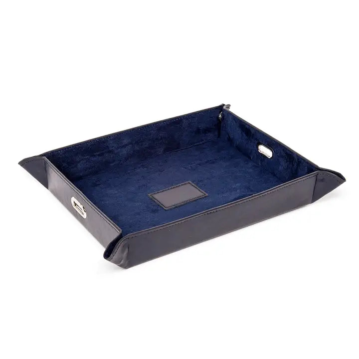 Loose change, watches, phones, and business cards need a home at the end of the day. Empty your pockets into our textured leather valet throwall.
